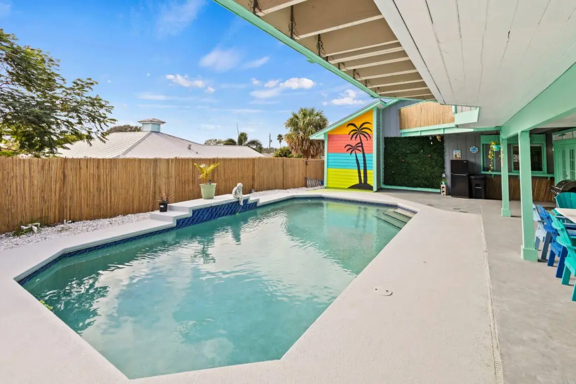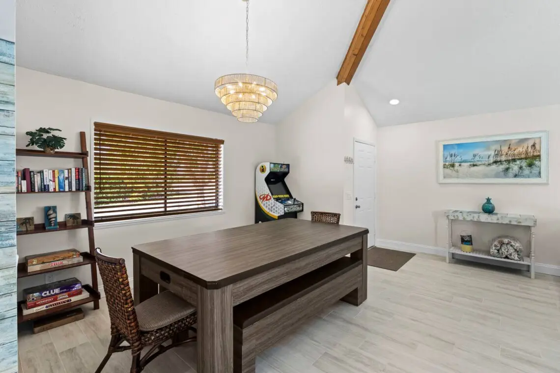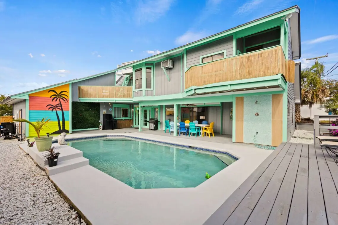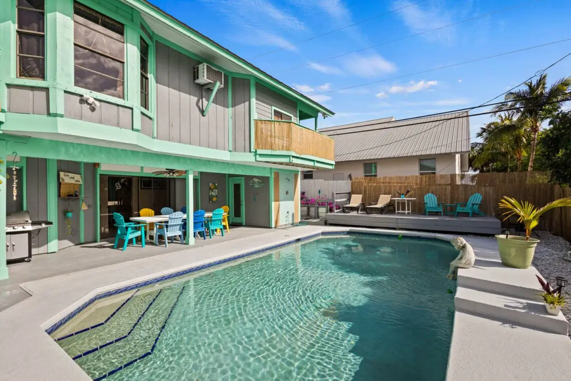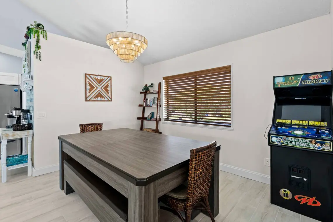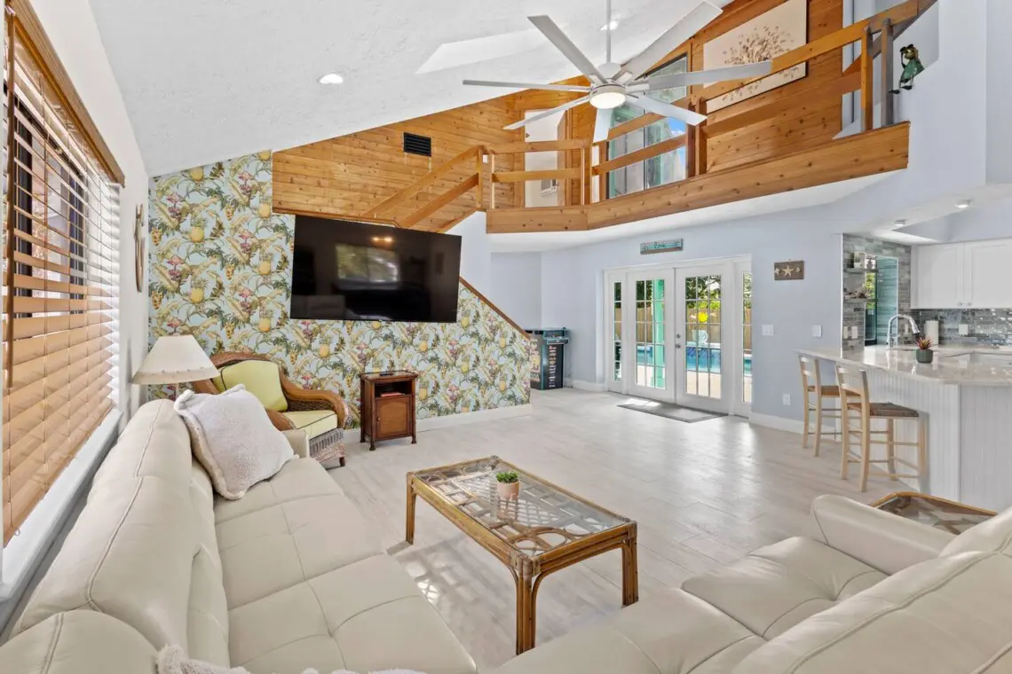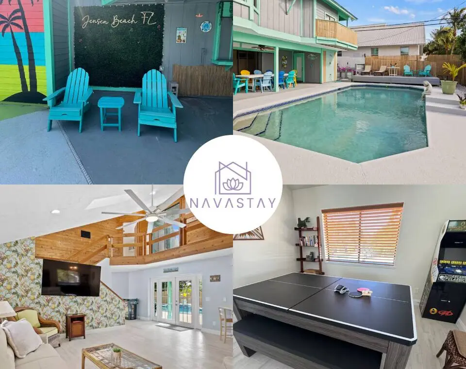 Welcome to your ultimate Jensen Beach getaway! This family-friendly home offers room for everyone, sleeping up to 13 guests in comfort. Enjoy a private pool, arcade games, and a unique crow’s nest. The master suite upstairs features two balconies for a private retreat, while the spacious layout includes a large living area perfect for gathering. Located near beaches, dining, and shopping, this home is your ideal coastal escape!