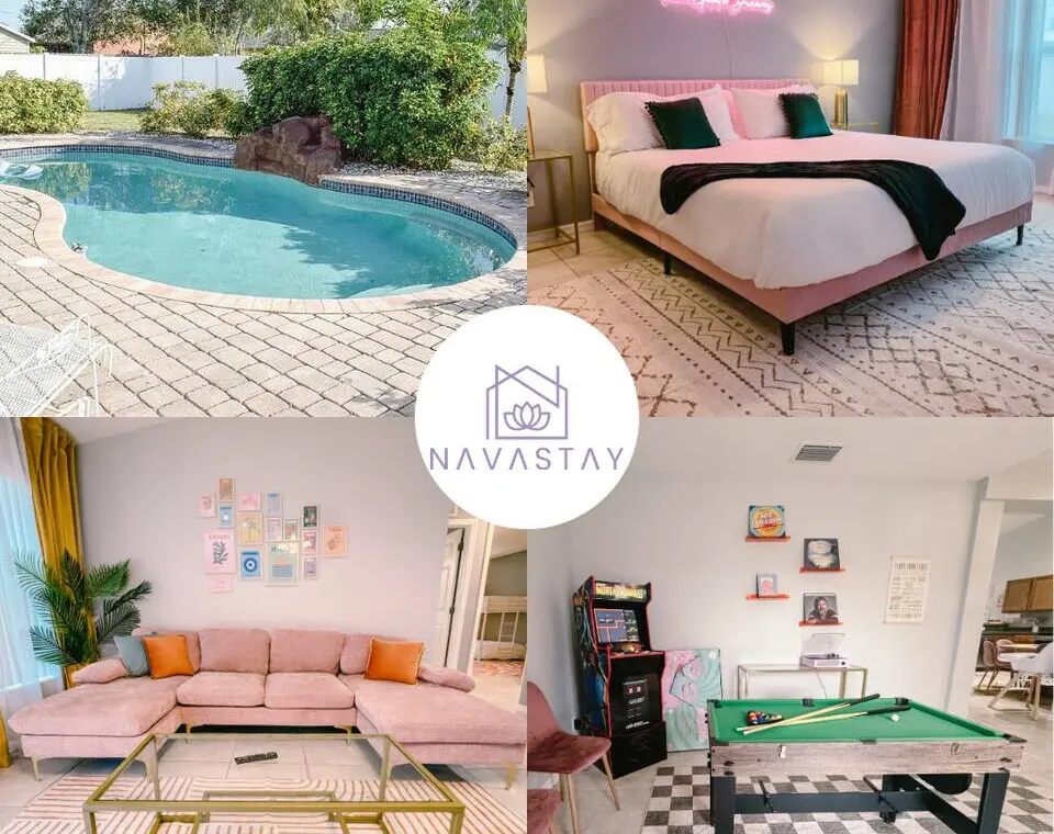 Welcome to your perfect family getaway in sunny Port St. Lucie! This spacious 4-bedroom, 2-bathroom home is packed with fun, comfort, and stylish decor that’s perfect for memorable vacation photos. Whether you’re splashing in the private pool, playing games in the game room, or relaxing around the fire pit under the stars, this home has everything you need for a memorable stay.
