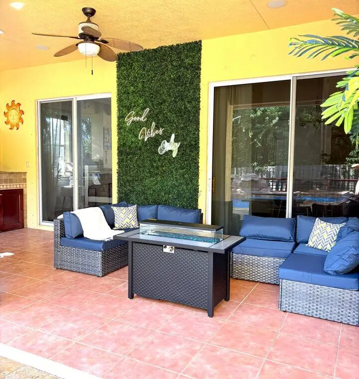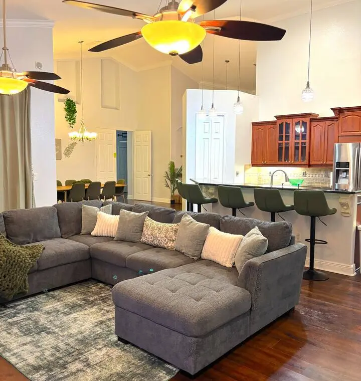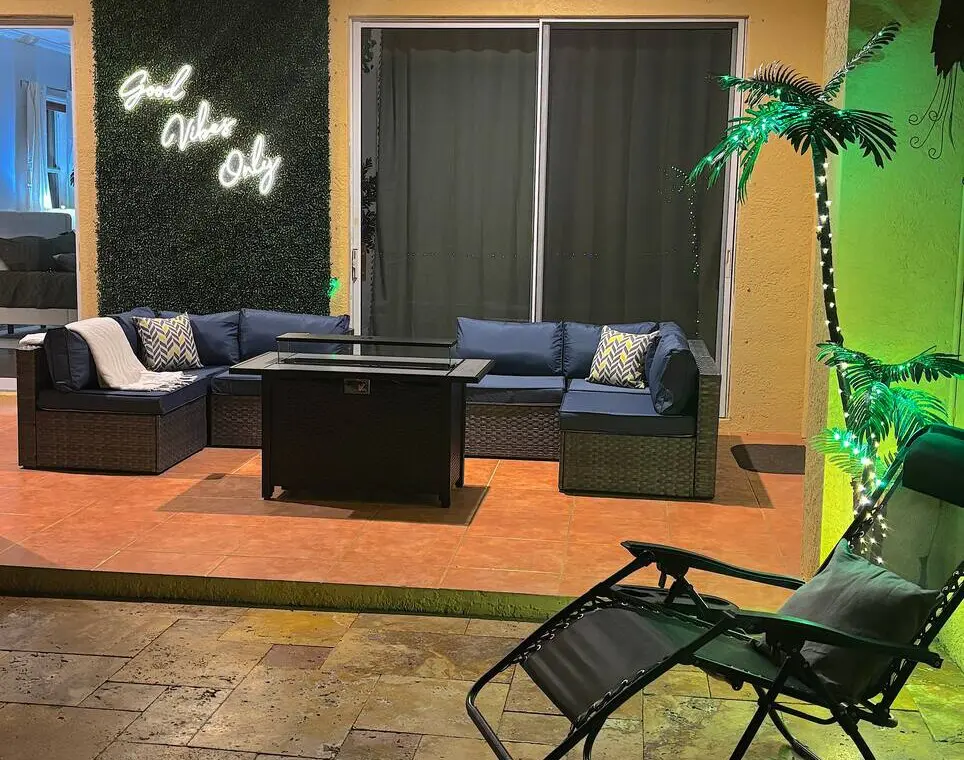 Palm Paradise in Port St. Lucie is the ultimate group getaway! This spacious 5 Bedroom, 3 Bathroom home sleeps up to 23 guests and features a private saltwater pool, outdoor kitchen with BBQ, and a gas fire pit surrounded by lush palms. Inside, enjoy an extremely spacious home with fun for the whole family! With plenty of board games, Pacman arcade & even a popcorn maker, you’ll have plenty to do inside and out! This home is perfect for family reunions, retreats, or fun-filled vacations!