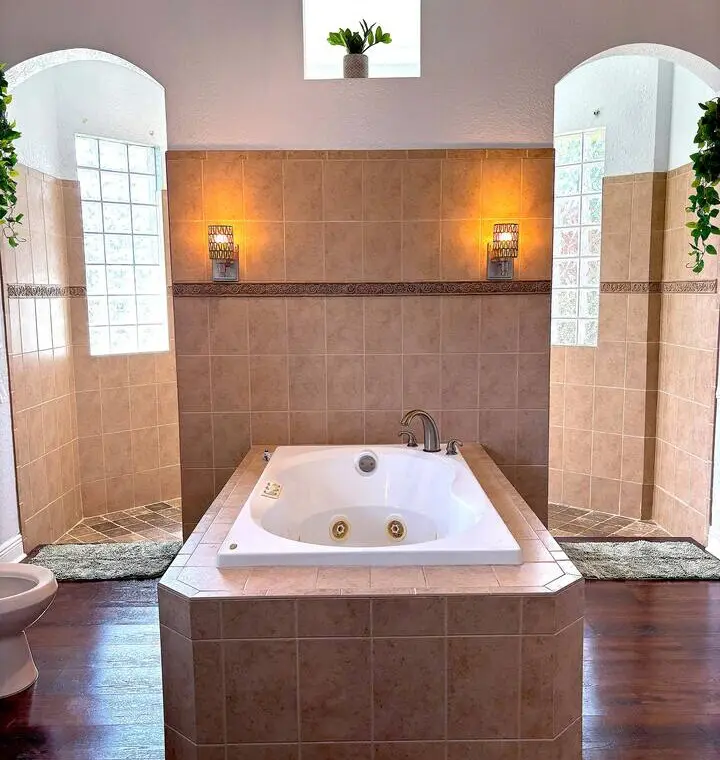 Master Suite: King bed, massive en suite with two showers, jetted tub, double vanities & pool view (sleeps 2)