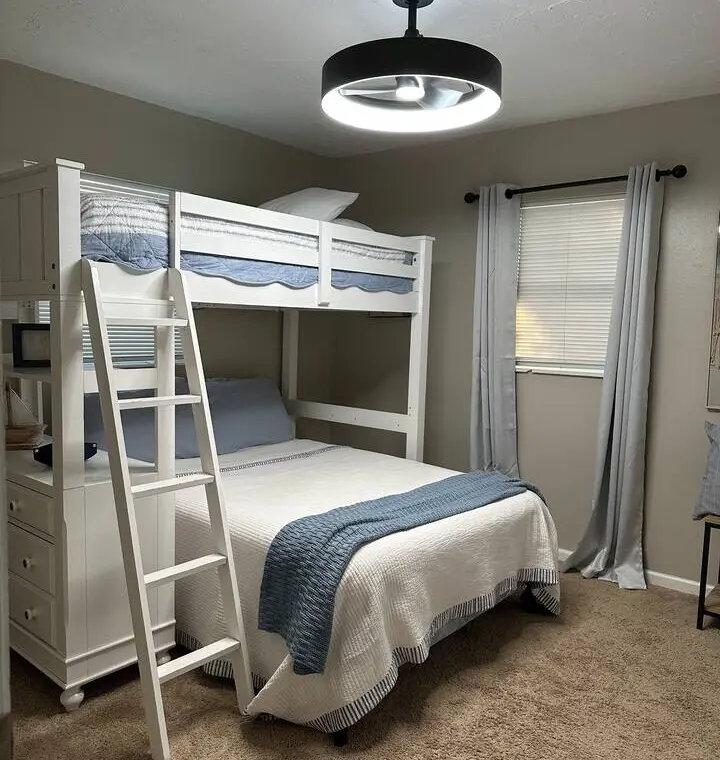 ▪️Guest Bedroom #2: 1-Full Size Bed, 1-Twin Bunk Bed, Plenty of Sheets, Pillows and Comforters, Forward/Reverse LED Light/Ceiling Fan, Closet with Drawers and Plenty of Hangers