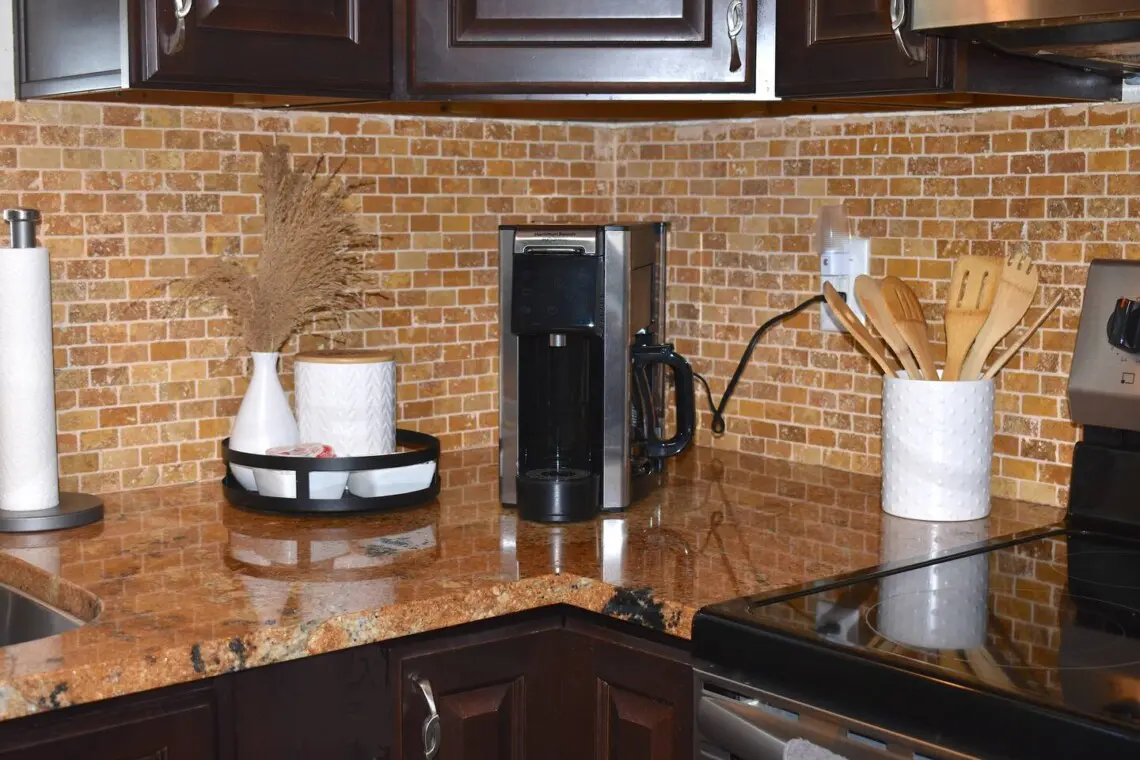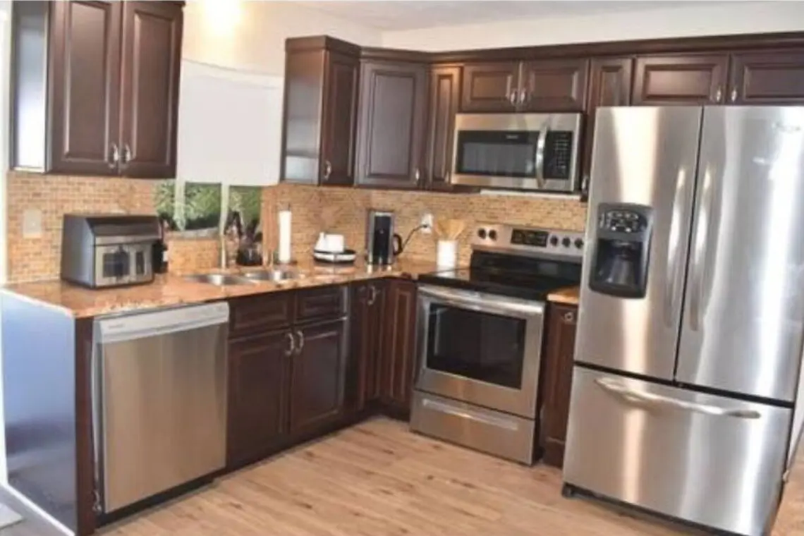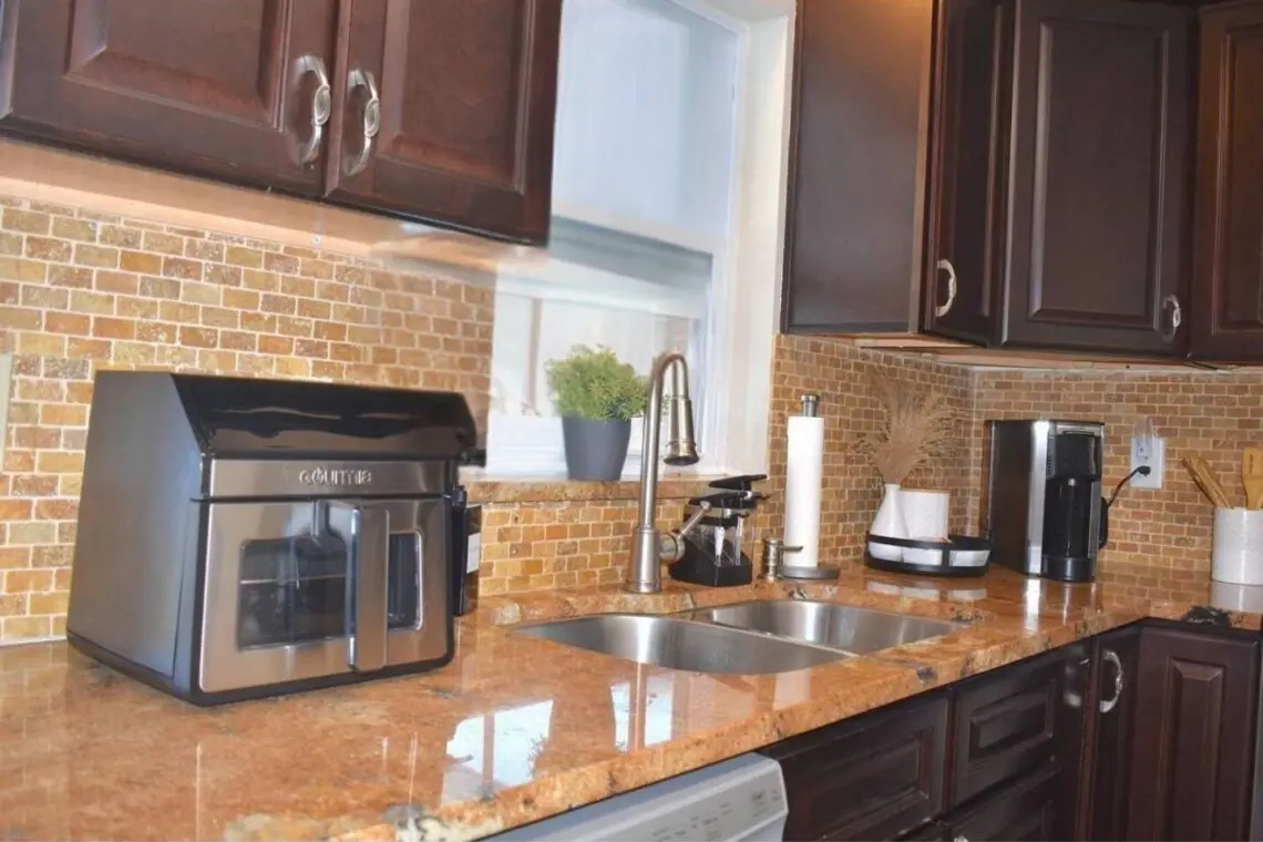 This kitchen is equipped with every cooking utensil imaginable, ensuring you have all you need for culinary creativity. It features a large air fryer and a state-of-the-art coffee maker that offers both K-cup and filter options for brewing the perfect cup (upon your arrival, you’ll find your first few cups of coffee ready to enjoy, complete with creamer and sugar to suit your taste). The kitchen also boasts sleek stainless steel appliances. Feel free to stock up on all your favorite ingredients, as the spacious pantry provides ample room for all your goodies.