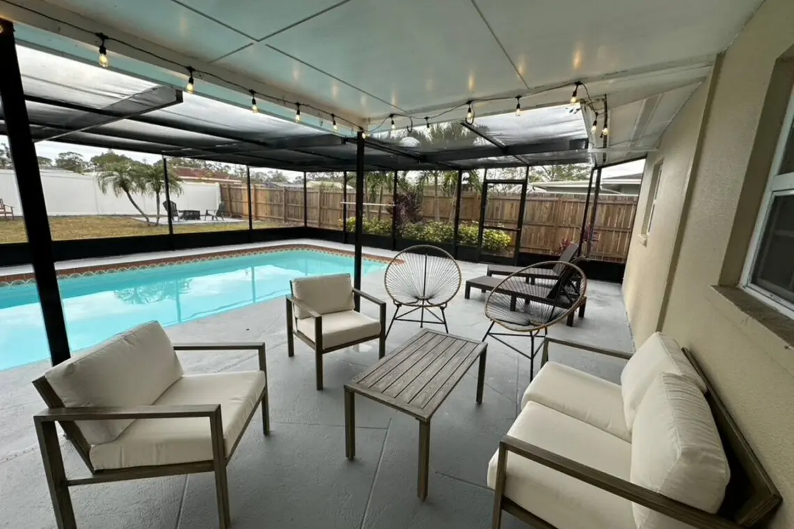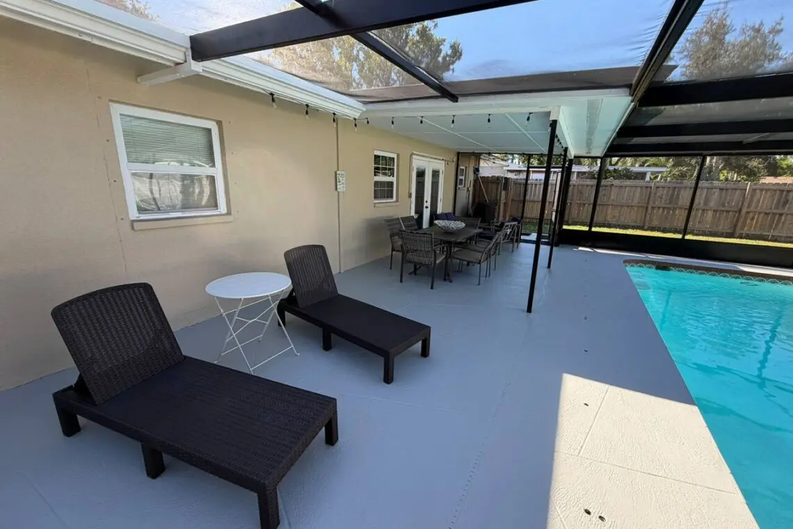 Escape to a serene family retreat near Pinecraft and Yoders! This 3-bed, 2-bath home features a screened-in heated swimming pool for year-round enjoyment. Nestled in a quiet, family-friendly neighborhood, savor nearby Amish dining at Yoders and Der Dutchman. Siesta Key & Lido Key Beaches are only 8.7 miles away! Explore Marina Jack’s at Bayfront Park in downtown Sarasota, where you can admire stunning boats and enjoy a leisurely stroll. Your perfect vacation awaits you!