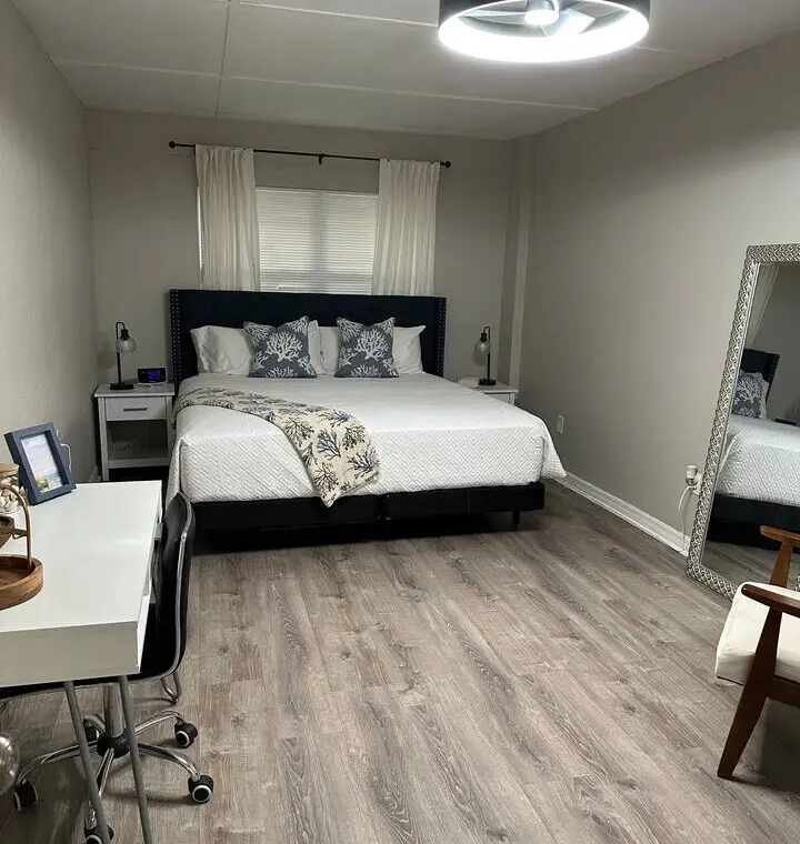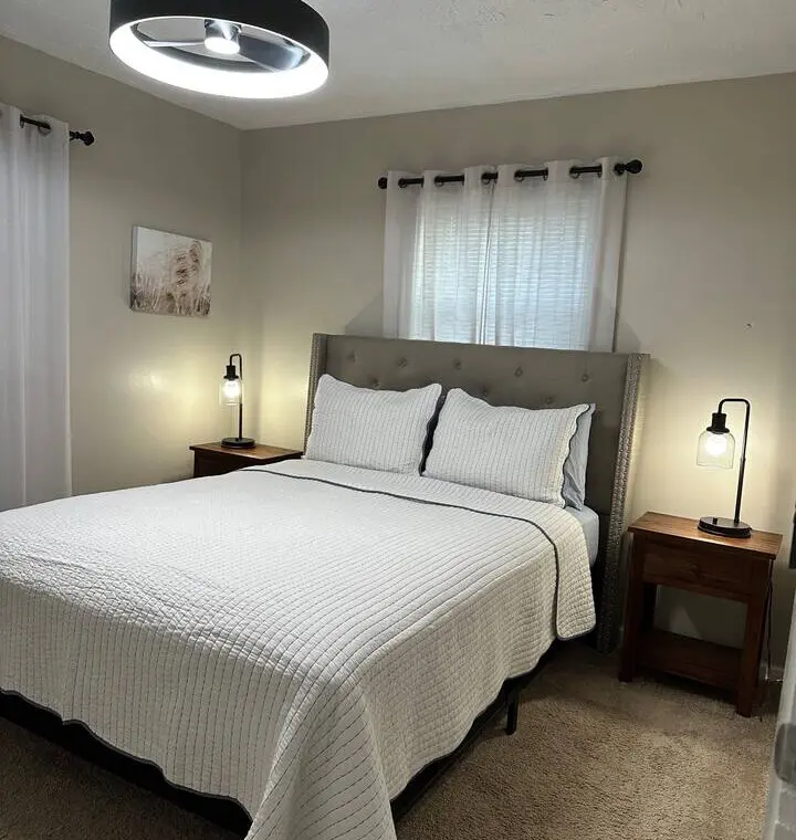 ▪️Guest Bedroom #1: Queen-Size Bed, Night Tables with Reading Lights and USB Charging Ports, Closet with Drawers and Plenty of Hangers, Forward/Reverse LED Light/Ceiling Fan, Plenty of Sheets, Pillows and Comforters