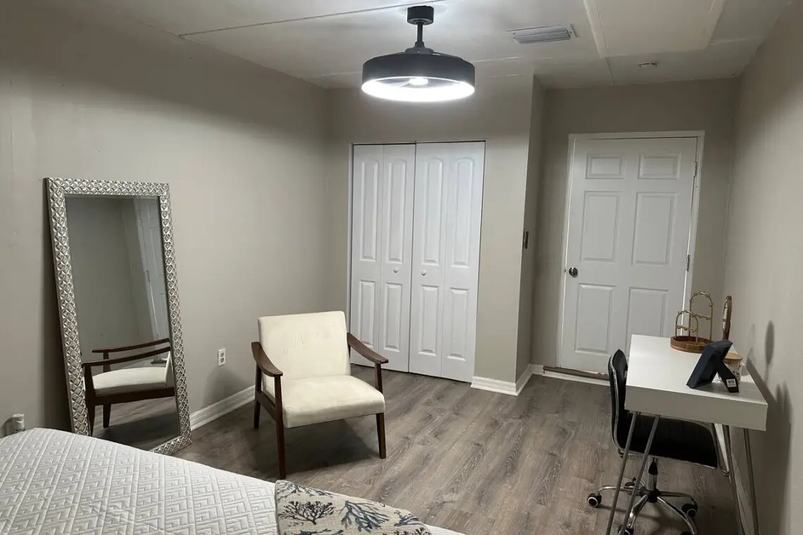 ▪️Master Bedroom: King-Size Bed, Sitting Chair, Desk, Chair (work station), Large Full-Size Mirror, Closet with Plenty of Hangers, Forward/Reverse LED Light/Ceiling Fan, Night Tables with Reading Lights and USB Charging Ports, Plenty of Sheets, Pillows and Comforters
