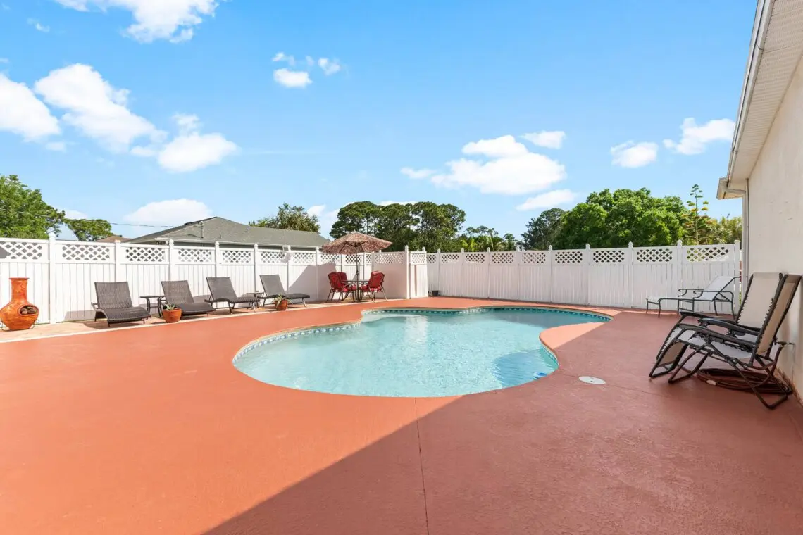 Welcome to Vero Serenity! This spacious 3BR + den retreat sleeps 8 and features two king suites, a queen room, and a cozy sleeper sofa. Enjoy the large private pool, outdoor dining, and stylish furnishings—perfect for family getaways or group trips. Located in peaceful Vero Beach, you’ll relax in comfort while being close to beaches, dining, and attractions!