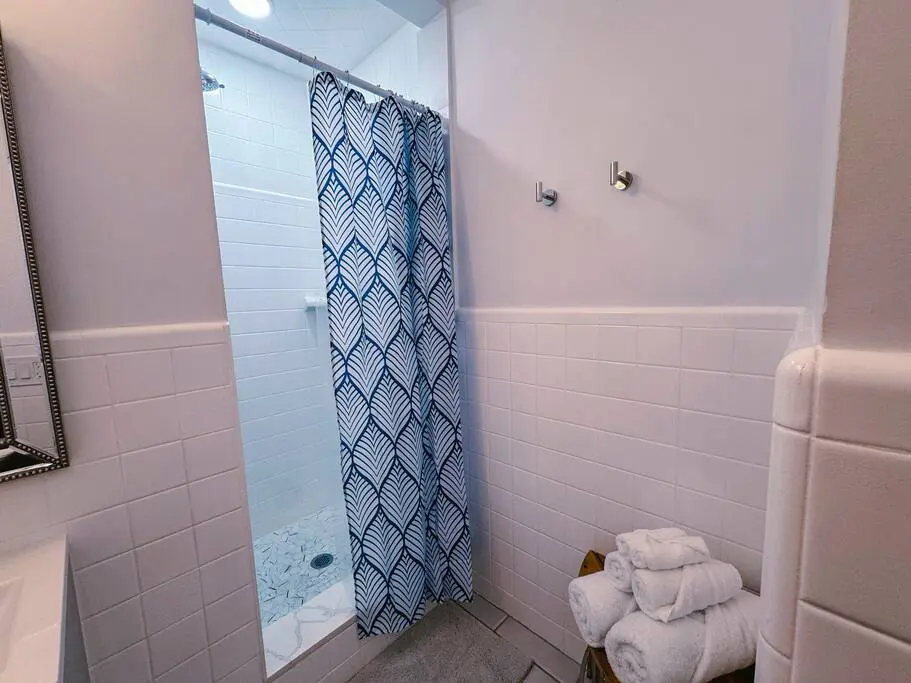 This full bathroom is completely private and separated from the main room. It is stocked with all essential toiletries, so you don’t have to worry about packing extra.